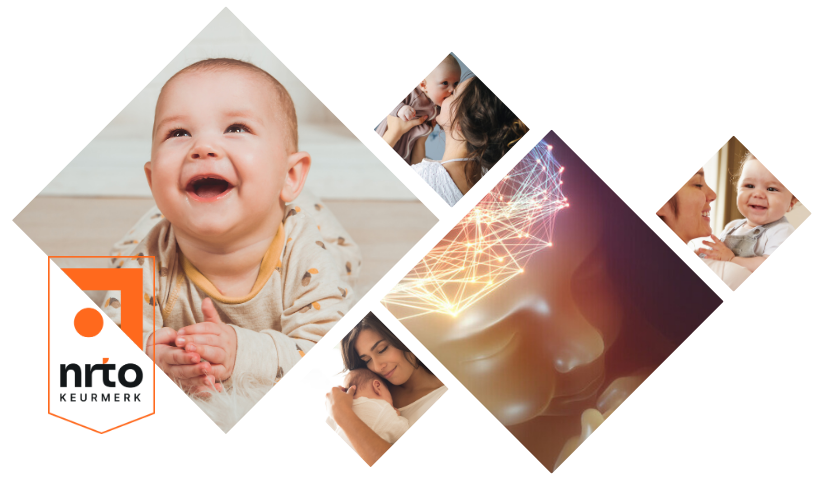 De e-learning bestaat uit zes online modules, waar de cursist op elk moment van de dag toegang tot heeft. Na elke module van ongeveer 1,5 uur aan theorie, is er een praktijk-opdracht. Deze praktijk-opdracht bestaat uit het observeren van een collega en het oefenen met een baby op de groep. Deze praktijkopdracht kan tijdens werktijd worden uitgevoerd en het is niet nodig om hier extra tijd voor vrij te plannen. Een cursist kan zelf kiezen of zij de theorie en praktijk afwisselt, of dat zij eerst alle theorie volgt en daarna op 1 dagdeel alle opdrachten tijdens werktijd uitvoert. Op elke praktijkopdracht dient de cursist te reflecteren aan de hand van een format in haar persoonlijke werkboek. - Toetsing en beoordeling